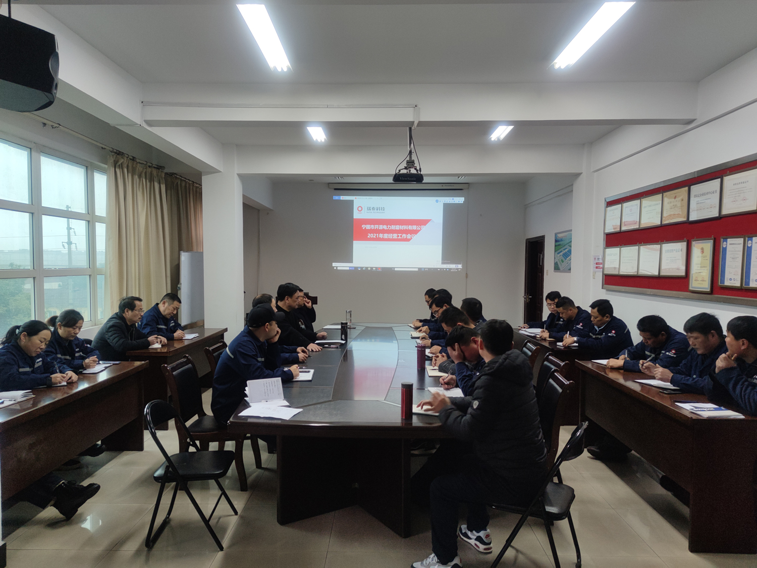 1月10日上午,公司三樓會議室召開2021年度經營工作總結會議。會議由總經理汪德發主持,公司經營班子成員、總經理助理及各部門、車間負責人參加會議。